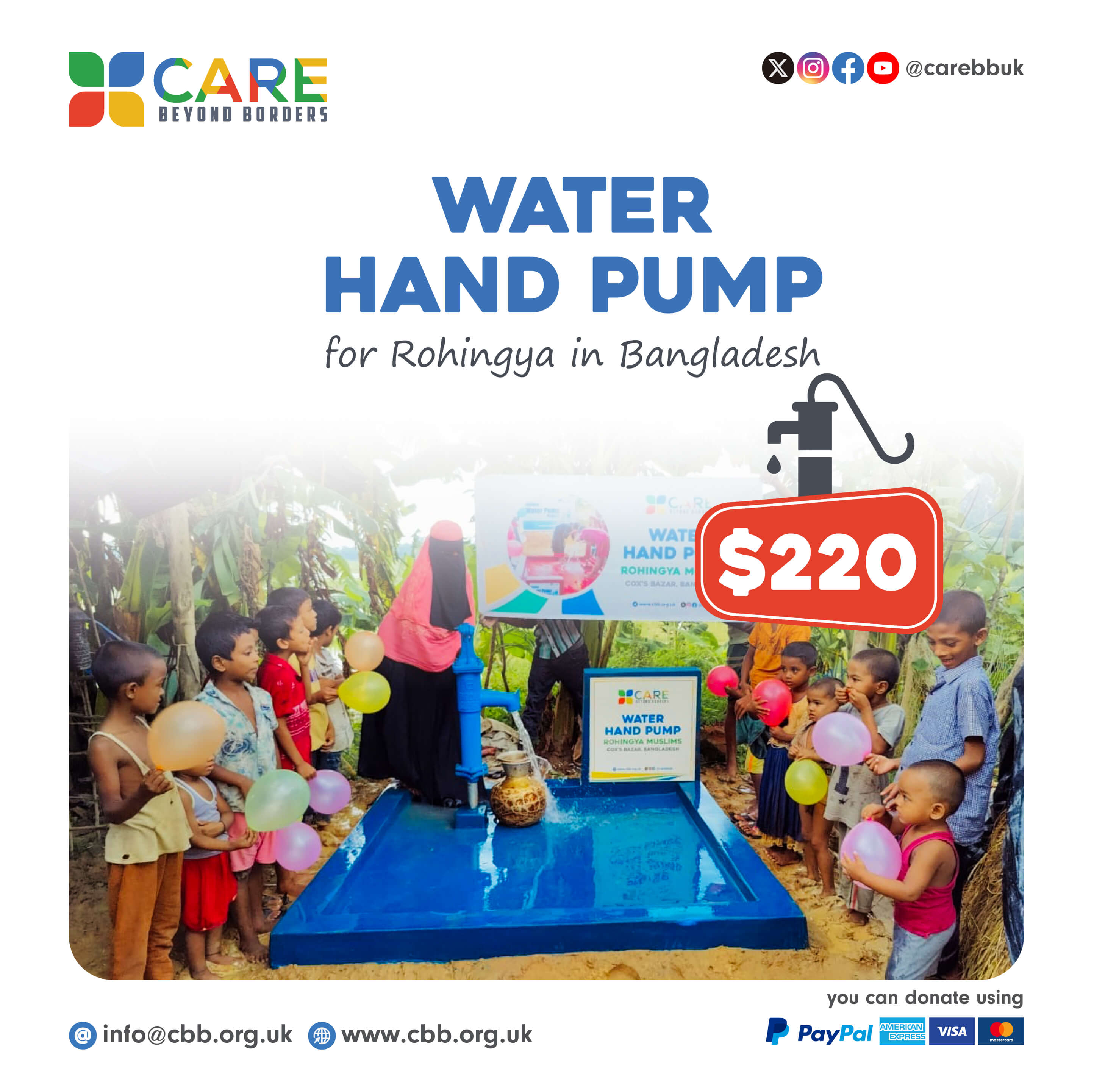 Providing Clean Water to disadvantaged people and Rohingya refugees in Bangladesh. Please help us to build water wells for those needy people. Contribute just $220 for a water well. Donate Now!